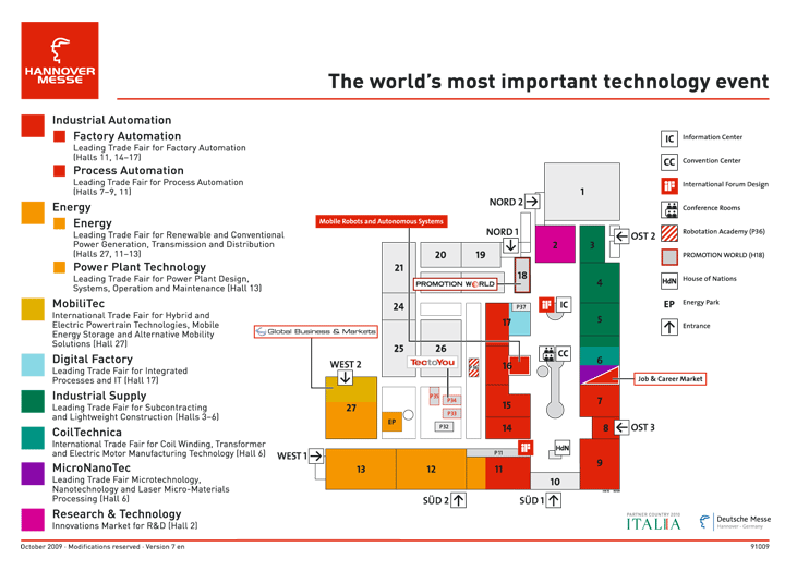 汉诺威展览中心位于德国汉诺威工业城市,它是世界上最大的展览设施。其中这座世界最大的展览场拥有非常现代化的基础设施和艺术性的技术手段。它每年都会为26000余位展商和230万观众人次的年流量而设计。 汉诺威会展中心总占地面积为100万平米,它共分了27个展馆,展馆室内展览总面积达到49.8万平方米。其中最新建成的27号展馆位于展场西南角,展览总面积为31,930平方米,造价6140万欧元。8/9号馆、13号馆和26号馆都建筑风格独特。