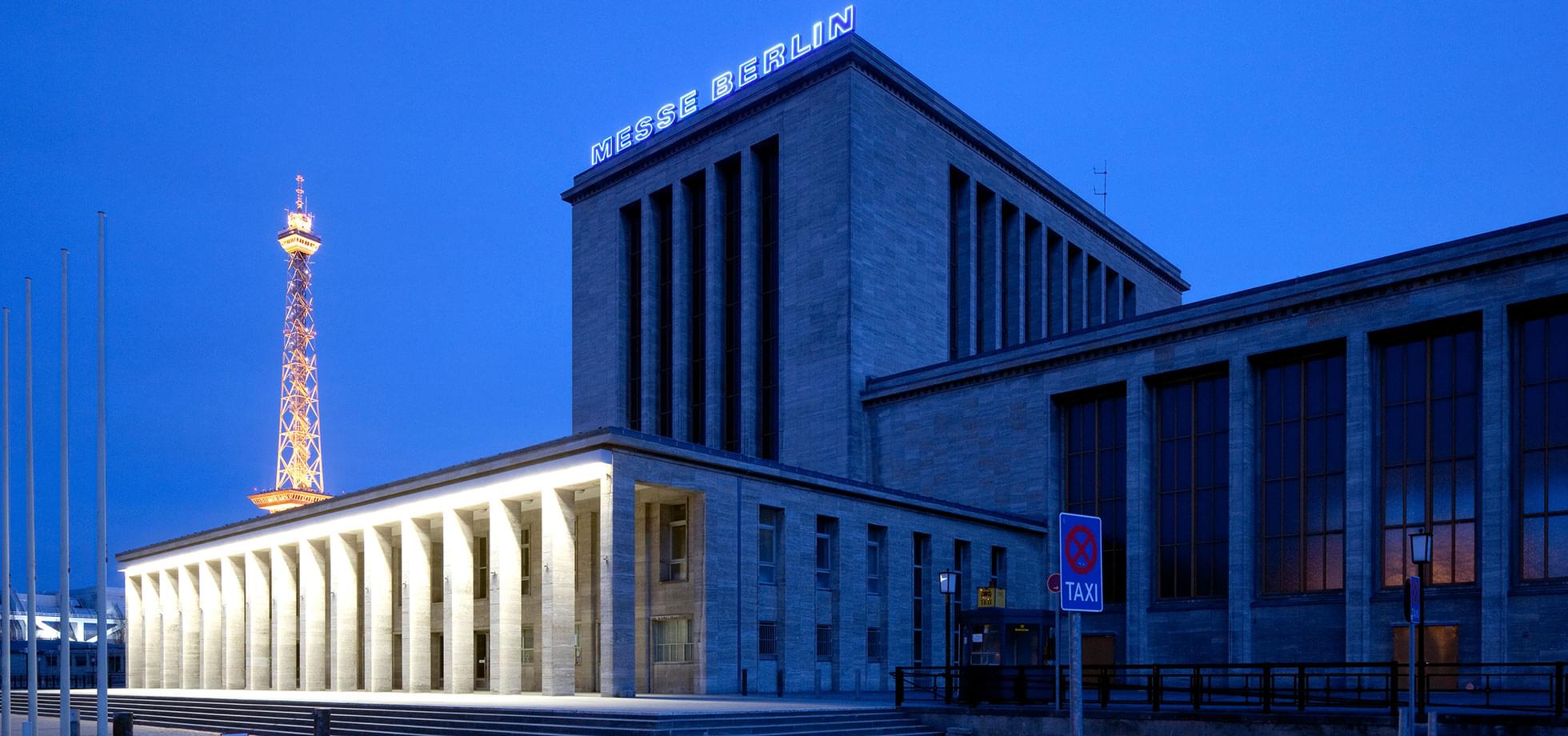 柏林会展中心坐落于德国柏林夏洛腾堡区,是德国第五大展馆,展览中心室内展览总面积约为16万平方米,包括26个相连的展示厅,并设有10000平方米的中庭。