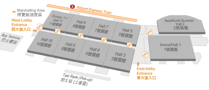 香港亚洲国际展览中心AsiaWorld Expo是世界级之展览及活动场地,香港特别行政区政府公私营合作的发展项目,面积达112840平方米,香港展馆可展览面积达70000平方米,香港展览中心适合举办展览、会议、演唱会、体育和各类文娱活动。内里设有10个位于地面的单层无柱式展馆,包括一个可以容纳14000名观众的香港最大室内多用途表演场馆 AsiaWorld-Arena,以及一个可以容纳700-3800人的香港最大及最新室内峰会组合及宴会设施的世界级展览及会议场馆AsiaWorld-Summit。