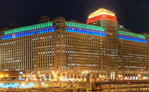 芝加哥商品市场位于芝加哥河畔,它拥有40万平方米的面积,其中可展出面积为5万平方米。商品市场是美国芝加哥的一座商业建筑,位于该市的近北区。在1930年开业时,为世界最大建筑,建筑面积达4,000,000平方英尺 。
